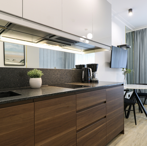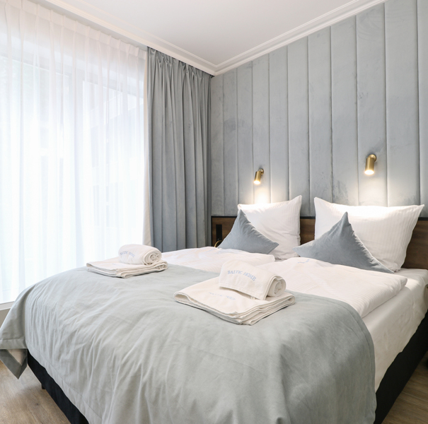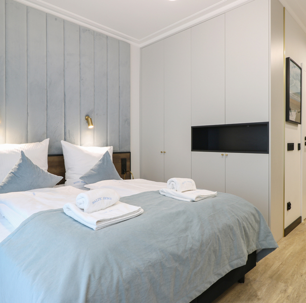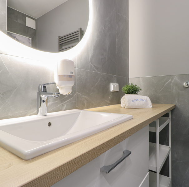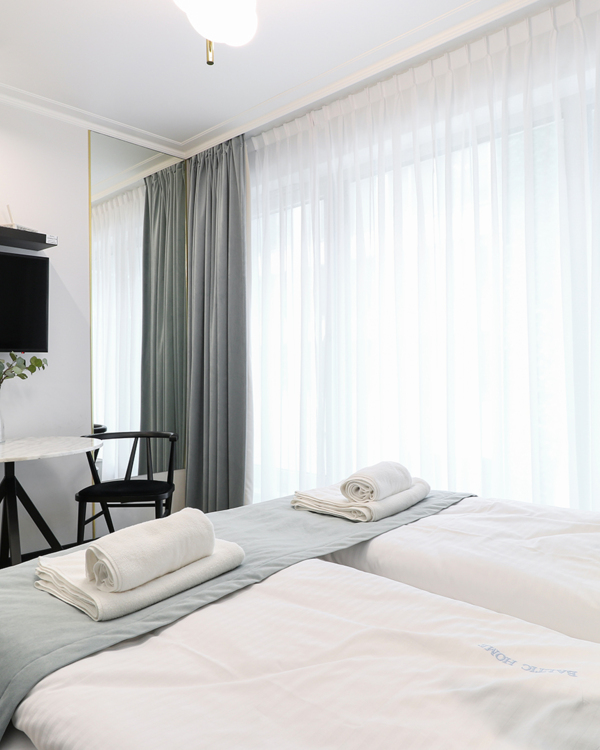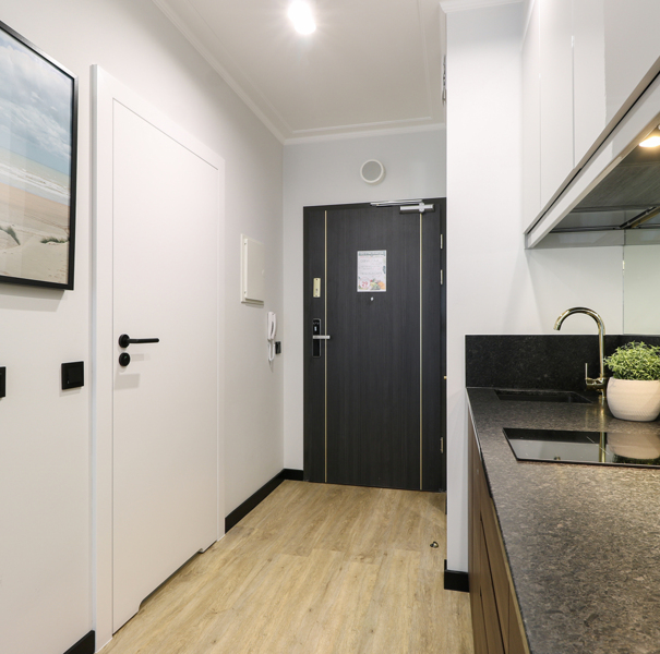 Apartament mieści się na pierwszym piętrze budynku Lividus, ulokowany jest w wewnętrznej stronie budynku. Ma widok na dziedziniec i posiada balkon francuski. W apartamencie znajduje się hol, łazienka z przestronną kabiną prysznicową, pojedyncza kanapa, wygodne łóżko małżeńskie, praktyczny stół z krzesłami, w pełni wyposażony aneks kuchenny oraz klimatyzacja. Do dyspozycji Gości są dodatkowo telewizja wraz z bezpłatnym i bezprzewodowym dostępem do Internetu.