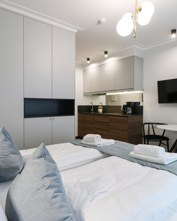 Apartament mieści się na pierwszym piętrze budynku Lividus, ulokowany jest w wewnętrznej stronie budynku. Ma widok na dziedziniec i posiada balkon francuski. W apartamencie znajduje się hol, łazienka z przestronną kabiną prysznicową, pojedyncza kanapa, wygodne łóżko małżeńskie, praktyczny stół z krzesłami, w pełni wyposażony aneks kuchenny oraz klimatyzacja. Do dyspozycji Gości są dodatkowo telewizja wraz z bezpłatnym i bezprzewodowym dostępem do Internetu.