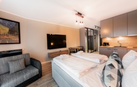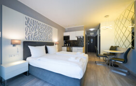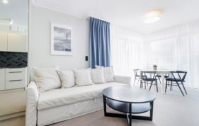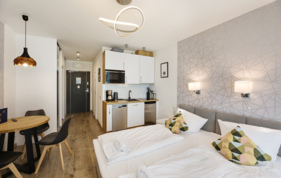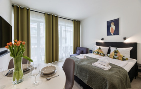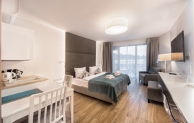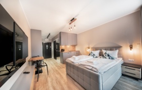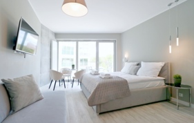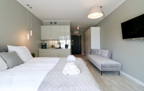 Albus to nowoczesny budynek oferujący w pełni wyposażone, komfortowe apartamenty o wysokim standardzie. Dzięki różnorodnej ofercie goście mogą wybierać spośród jedno- lub dwupokojowych oraz dwupoziomowych apartamentów. Osoby ceniące bliskość do morza z pewnością docenią położoną wzdłuż budynku drogę, która prowadzi prosto do cichego i malowniczego wejścia na plażę.