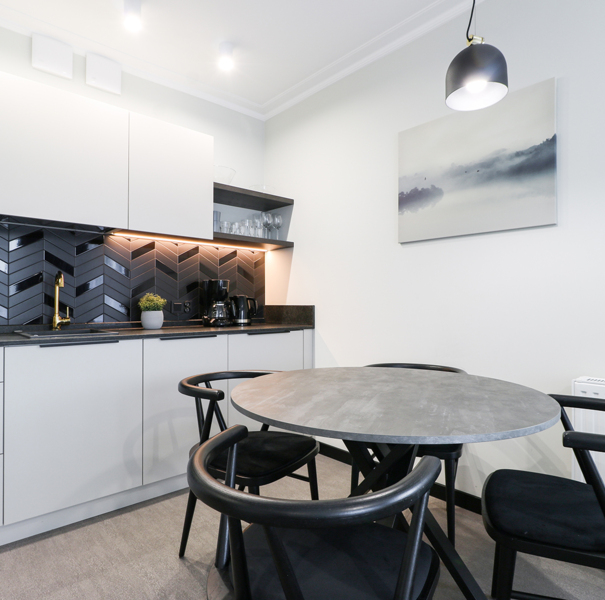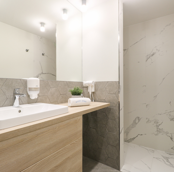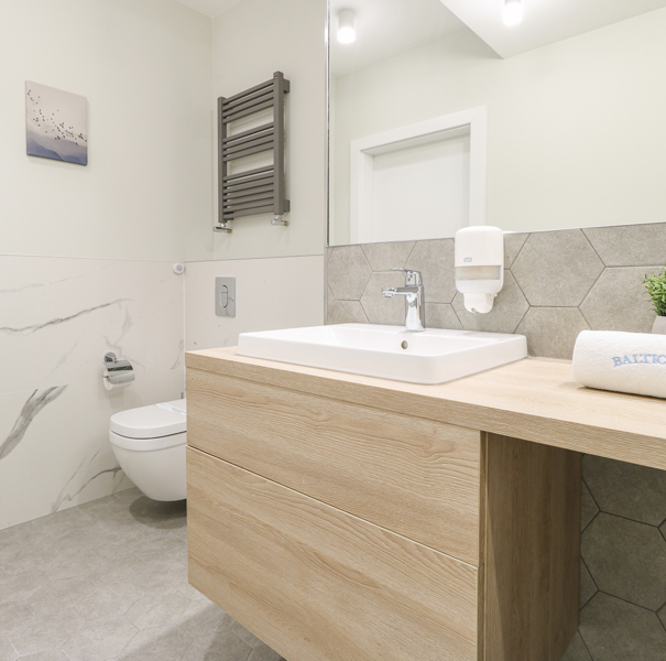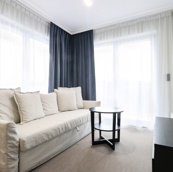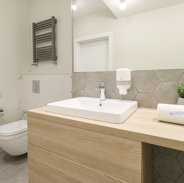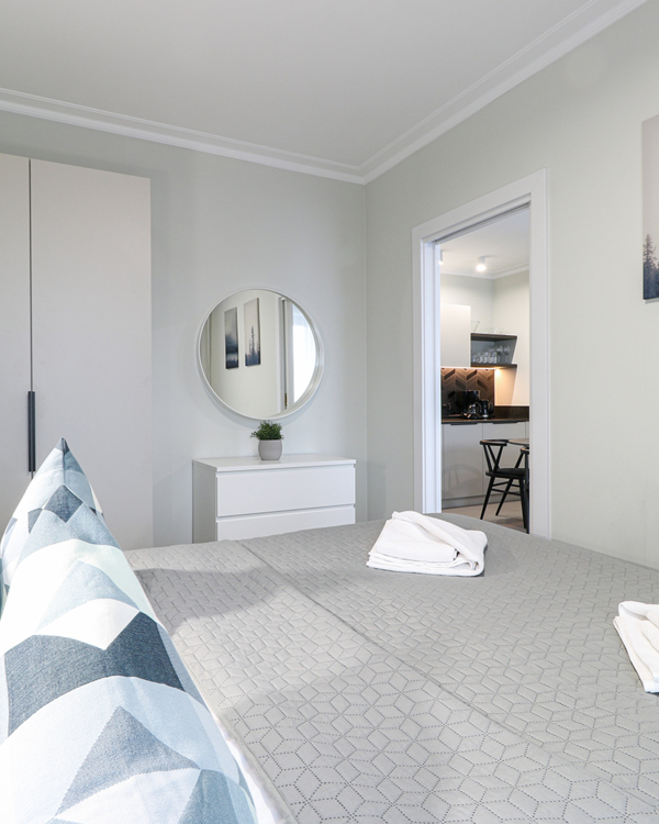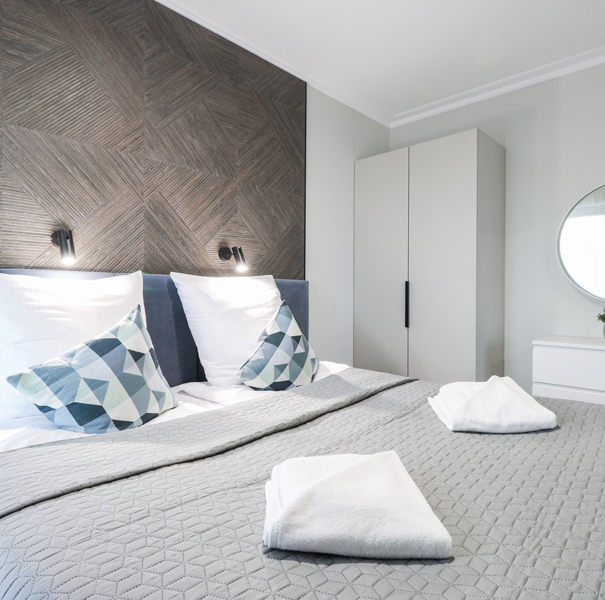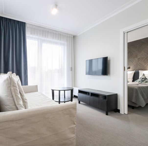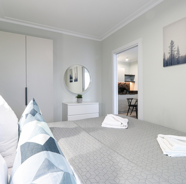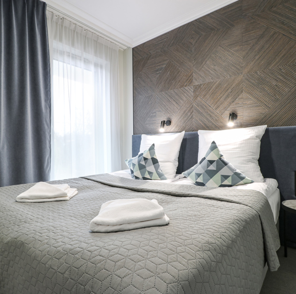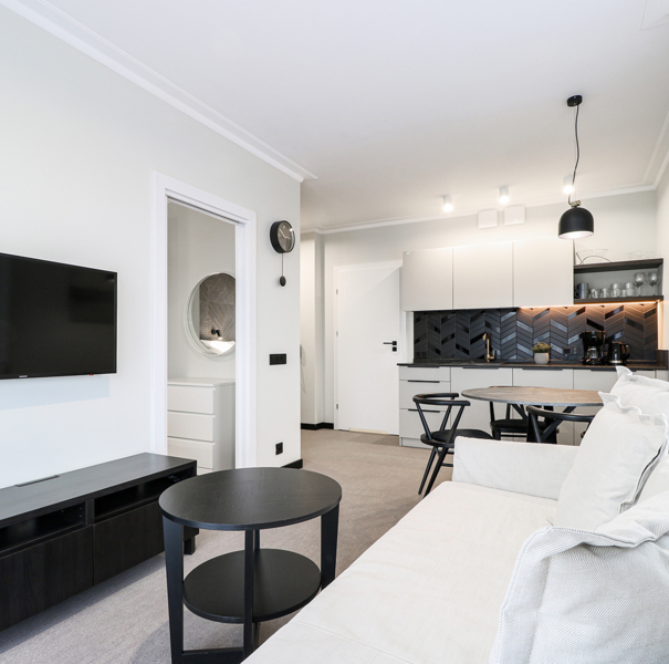 Apartament mieści się na trzecim piętrze budynku Rubus. Lokal składa się z sypialni z wygodnym łóżkiem małżeńskim, salonu z rozkładaną podwójną kanapą, praktyczny stół z krzesłami, w pełni wyposażony aneks kuchenny oraz sporych rozmiarów balkon z meblami tarasowymi. Dodatkowo w apartamencie znajdują się hol ze sporą szafą wnękową oraz łazienka z przestronną kabiną prysznicową. Do dyspozycji Gości są dodatkowo telewizja wraz z bezpłatnym i bezprzewodowym dostępem do Internetu.