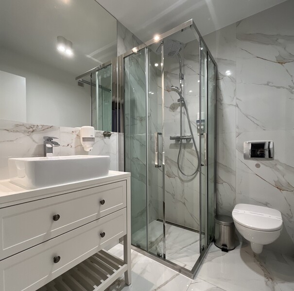 The apartment is located on the fourth floor of the Lividus building. The unit consists of a living room with a double sofa bed, a practical table with chairs, a fully equipped kitchenette with a dishwasher, a bathroom with a spacious shower stall, and a sizable balcony with patio furniture. On the second level of the apartment there is a double bedroom with a comfortable bed and a capacious dressing room, from which you can access the terrace.. Additionally, the apartment is air-conditioned and has a hallway with a sizable closet, a dressing room with a dressing table. The guests can also take advantage of the TV and free Wi-Fi.