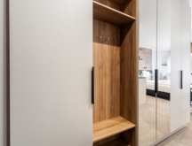 The apartment is located on the third floor of the Albus building. The unit features a hallway with a sizable closet, a bathroom with a spacious shower stall, a comfortable double bed, a smaller single sofa bed, a practical table and chairs, a fully equipped kitchenette, and a sizable balcony with patio furniture. The guests can also take advantage of the TV and free Wi-Fi.