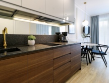 Apartament mieści się na pierwszym piętrze budynku Lividus. W lokalu znajduje się hol ze sporą szafą wnękową, łazienka z przestronną kabiną prysznicową, wygodne łóżko małżeńskie, mniejsza rozkładana pojedyncza sofa, praktyczny stół z krzesłami, w pełni wyposażony aneks kuchenny oraz sporych rozmiarów balkon z meblami tarasowymi. Do dyspozycji Gości są dodatkowo telewizja wraz z bezpłatnym i bezprzewodowym dostępem do Internetu.