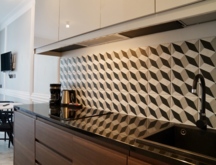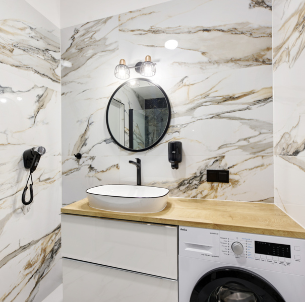 The apartment is located on the third floor of the Lividus building. The unit features a hallway with a sizable closet, a bathroom with a spacious shower stall, a comfortable double bed, a smaller single sofa bed, a practical table and chairs, a fully equipped kitchenette, and a sizable balcony with patio furniture. The guests can also take advantage of the TV and free Wi-Fi.