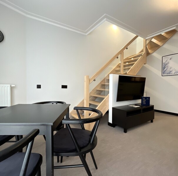 The apartment is located on the fourth floor of the Rubus building. The main floor of the unit consists of a living room with a double sofa bed, a practical table with chairs, a fully equipped kitchenette, a bathroom with a spacious shower stall, and a sizable balcony with patio furniture. Additionally, the apartment has a hallway with a large closet and air conditioning. The second level of the apartment consists of a double bedroom with a comfortable bed and a balcony with a partial view of the sea. The guests can also take advantage of the TV and free Wi-Fi.